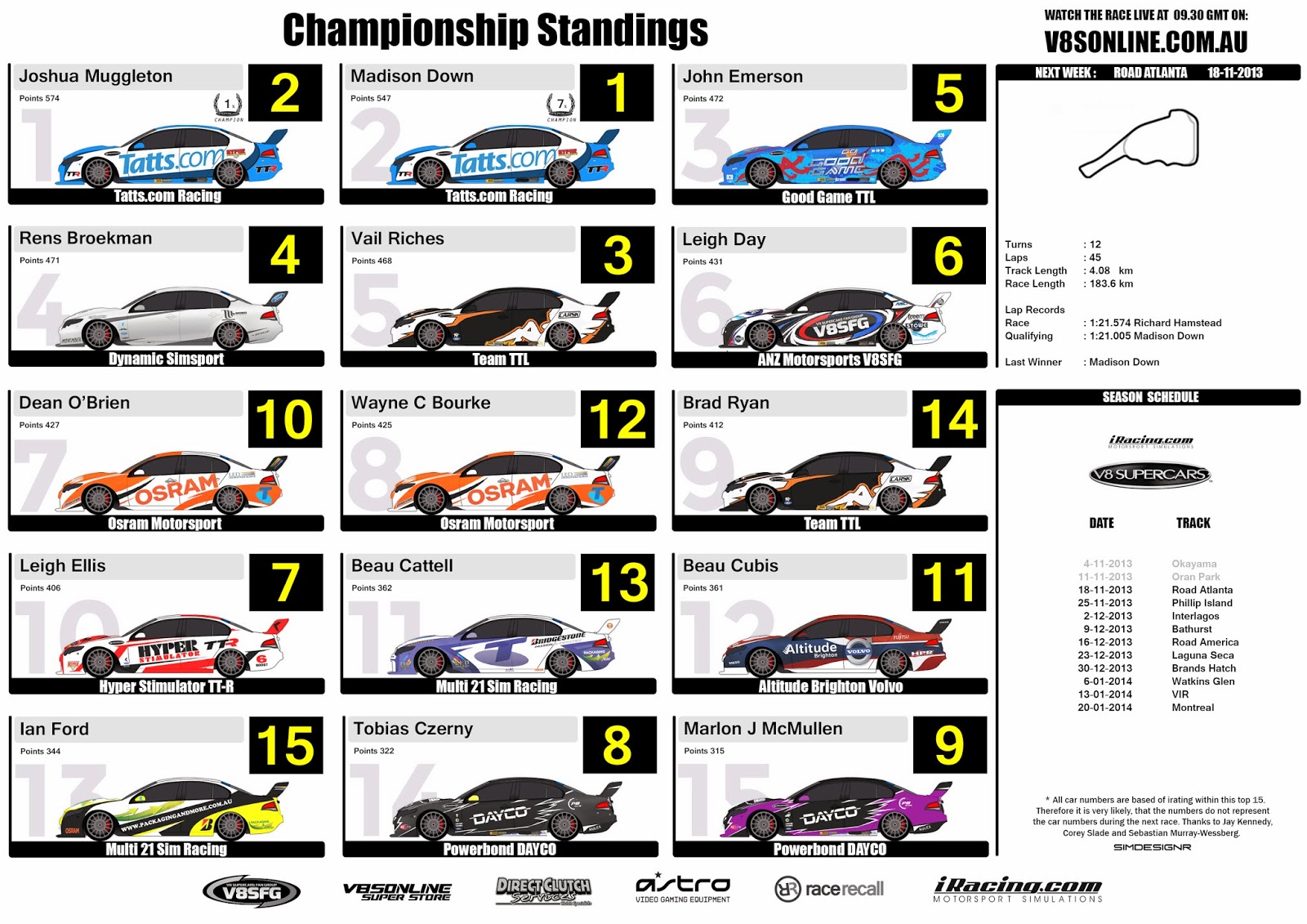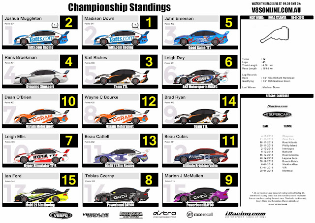 iRacing V8 Supercar Spotter Guide , Championship Standings (After Week 2)